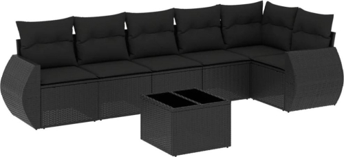 vidaXL 7-częściowy zestaw wypoczynkowy do ogrodu, z poduszkami, czarny