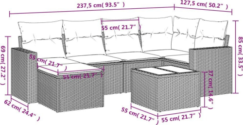 vidaXL 7-częściowy zestaw wypoczynkowy do ogrodu, z poduszkami, szary