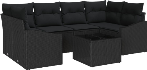 vidaXL 7-elementowy zestaw sofy ogrodowej Czarny Polirattan Prostokątny