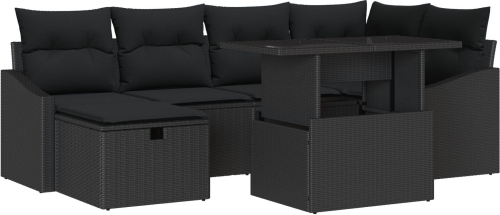 vidaXL 7-elementowy zestaw sofy ogrodowej z poduszkami czarny polirattan