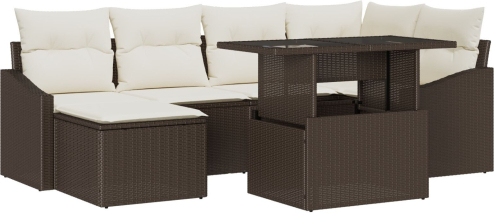 vidaXL 7-osobowy zestaw sofy ogrodowej z poduszkami brązowy polirattan