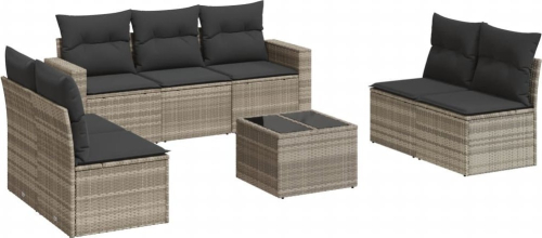vidaXL 8-cz. zestaw mebli ogrodowych, poduszki, jasnoszary polirattan