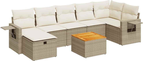 vidaXL 8-cz. zestaw mebli ogrodowych z poduszkami, beżowy, polirattan
