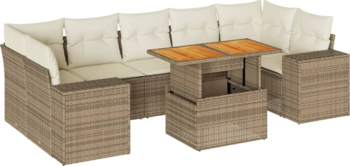 vidaXL 8-cz. zestaw mebli ogrodowych z poduszkami, beżowy, polirattan