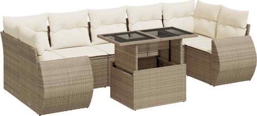 vidaXL 8-cz. zestaw mebli ogrodowych z poduszkami, beżowy, polirattan