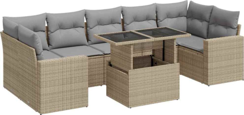 vidaXL 8-cz. zestaw mebli ogrodowych z poduszkami, beżowy, polirattan