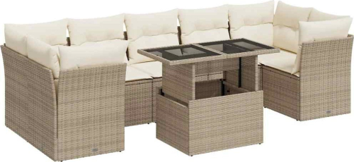 vidaXL 8-cz. zestaw mebli ogrodowych z poduszkami, beżowy, polirattan