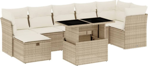 vidaXL 8-cz. zestaw mebli ogrodowych z poduszkami, beżowy, polirattan