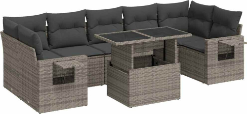 vidaXL 8-cz. zestaw mebli ogrodowych z poduszkami, szary, polirattan