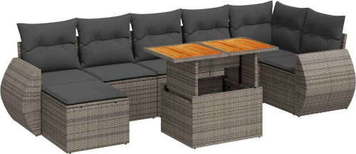 vidaXL 8-cz. zestaw mebli ogrodowych z poduszkami, szary, polirattan