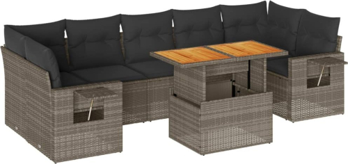 vidaXL 8-cz. zestaw mebli ogrodowych z poduszkami, szary, polirattan