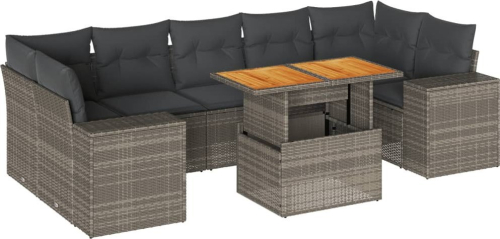 vidaXL 8-cz. zestaw mebli ogrodowych z poduszkami, szary, polirattan