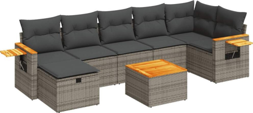 vidaXL 8-cz. zestaw mebli ogrodowych z poduszkami, szary, polirattan