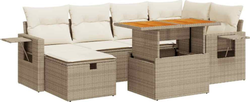 vidaXL 8-cz. zestaw mebli z poduszkami, beżowy, polirattan i akacja