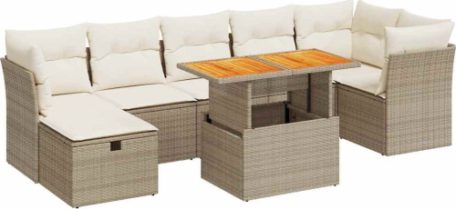 vidaXL 8-cz. zestaw mebli z poduszkami, beżowy, polirattan i akacja
