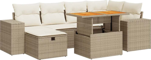 vidaXL 8-cz. zestaw mebli z poduszkami, beżowy, polirattan i akacja