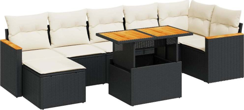 vidaXL 8-cz. zestaw mebli z poduszkami, czarny, polirattan i akacja