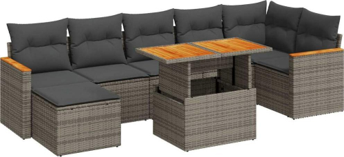vidaXL 8-cz. zestaw mebli z poduszkami, szary, polirattan i akacja