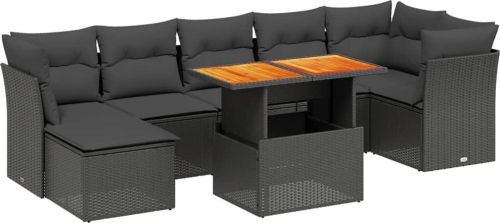 vidaXL 8-cz. zestaw wypoczynkowy do ogrodu, z poduszkami, czarny
