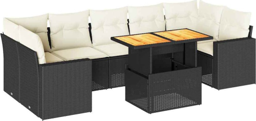 vidaXL 8-cz. zestaw wypoczynkowy do ogrodu, z poduszkami, czarny