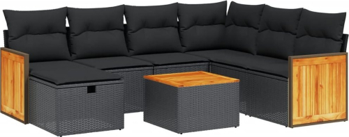 vidaXL 8-cz. zestaw wypoczynkowy do ogrodu, z poduszkami, czarny