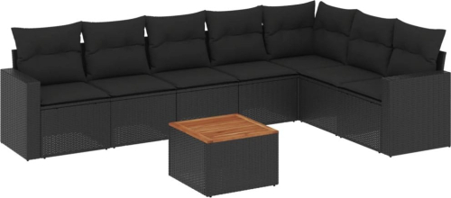 vidaXL 8-cz. zestaw wypoczynkowy do ogrodu, z poduszkami, czarny