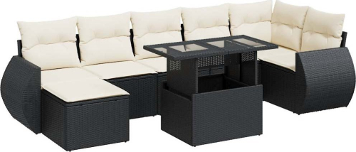 vidaXL 8-cz. zestaw wypoczynkowy do ogrodu, z poduszkami, czarny