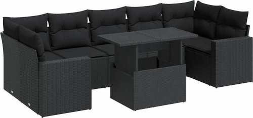 vidaXL 8-cz. zestaw wypoczynkowy do ogrodu, z poduszkami, czarny