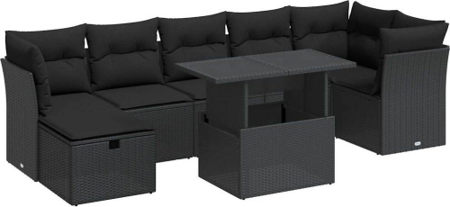 vidaXL 8-cz. zestaw wypoczynkowy do ogrodu, z poduszkami, czarny