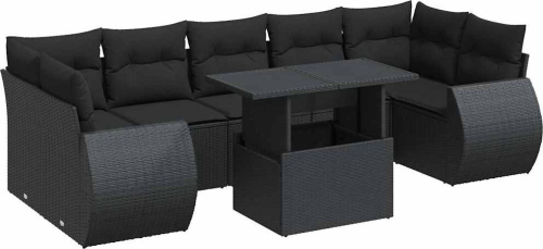 vidaXL 8-cz. zestaw wypoczynkowy do ogrodu, z poduszkami, czarny
