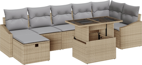 vidaXL 8-częściowy zestaw sof ogrodowych z poduszkami Beżowy Rattan