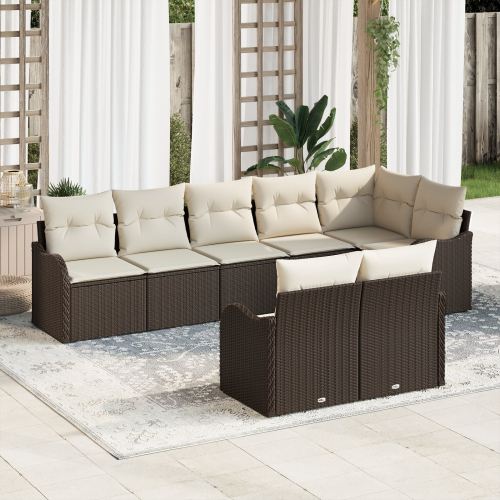 vidaXL 8-częściowy zestaw sof ogrodowych z poduszkami Brązowy Poli Rattan