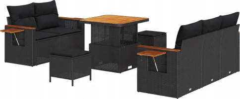 vidaXL 8-częściowy zestaw sof ogrodowych z poduszkami czarny poli rattan akacja