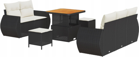 vidaXL 8-częściowy zestaw sof ogrodowych z poduszkami czarny polirattan akacja