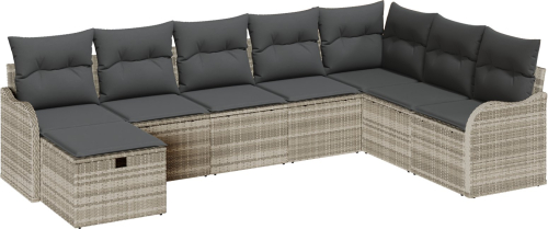 vidaXL 8-częściowy zestaw sof ogrodowych z poduszkami Jasnoszary Polirattan