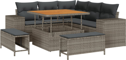 vidaXL 8 Częściowy Zestaw Sof Ogrodowych z Poduszkami Szary Polirattan Akacja