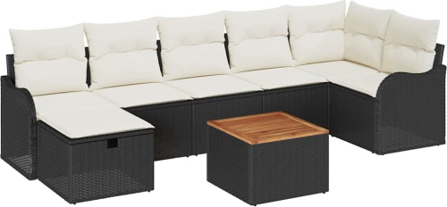 vidaXL 8-częściowy zestaw sof ogrodowych z poduszkami w czarnym kolorze polirattanu