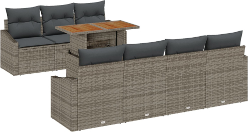 vidaXL 8-częściowy zestaw sof ogrodowych z poduszkami w szarym polirattanem