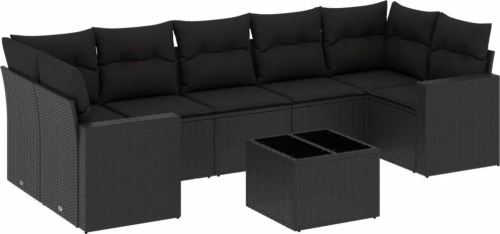 vidaXL 8-częściowy zestaw wypoczynkowy do ogrodu, z poduszkami, czarny