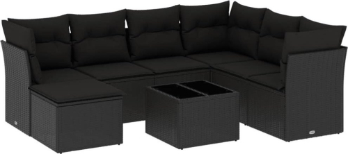 vidaXL 8-częściowy zestaw wypoczynkowy do ogrodu, z poduszkami, czarny