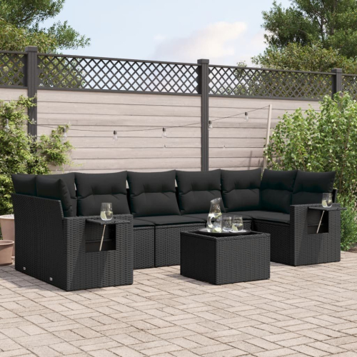 vidaXL 8-częściowy zestaw wypoczynkowy do ogrodu, z poduszkami, czarny
