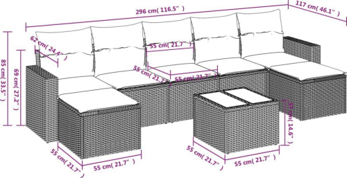 vidaXL 8-częściowy zestaw wypoczynkowy do ogrodu, z poduszkami, czarny
