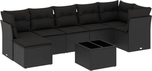 vidaXL 8-częściowy zestaw wypoczynkowy do ogrodu, z poduszkami, czarny
