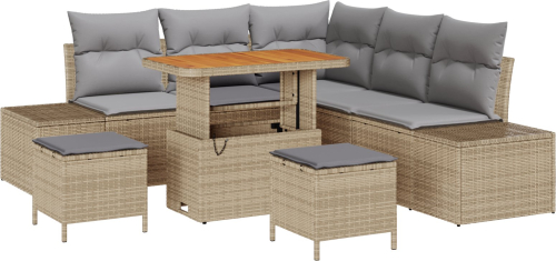 vidaXL 8-elementowy zestaw sofy ogrodowej z poduszkami beżowy polirattan akacja