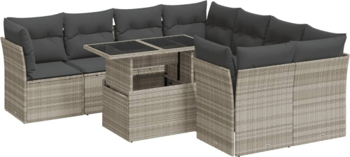 vidaXL 9-cz. zestaw mebli ogrodowych, poduszki, jasnoszary polirattan