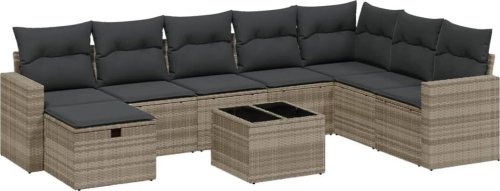 vidaXL 9-cz. zestaw mebli ogrodowych, poduszki, jasnoszary polirattan