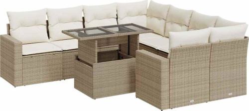 vidaXL 9-cz. zestaw mebli ogrodowych z poduszkami, beżowy, polirattan
