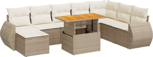 vidaXL 9-cz. zestaw mebli ogrodowych z poduszkami, beżowy, polirattan