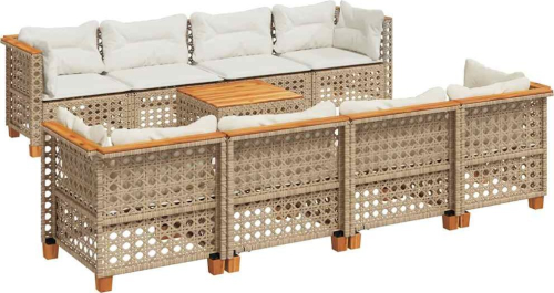 vidaXL 9-cz. zestaw mebli ogrodowych z poduszkami, beżowy, polirattan