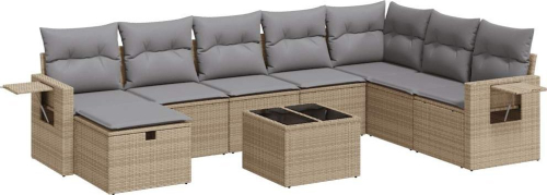 vidaXL 9-cz. zestaw mebli ogrodowych z poduszkami, beżowy, polirattan